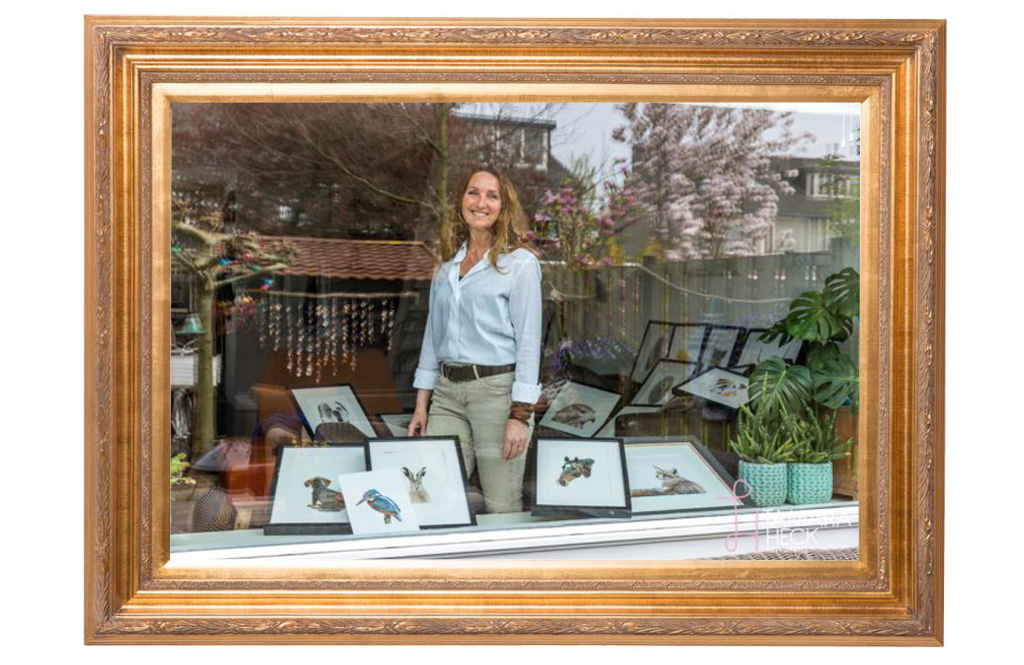 Vanaf april zouden de dieren portretten tijdelijk bij Sportschool Tino Hoogendijk hangen, maar zij zijn nu ook gesloten. Om de tijd nu door te komen is Astrid aan het opruimen geweest, heeft foto’s uitgezocht, doet ze soms boodschappen, kookt en brengt het bij familie langs. Verder doet ze alles in een lager tempo, haasten hoeft nu niet, de agenda is leeg! Normaal zou het haar beangstigen, maar nu niet.