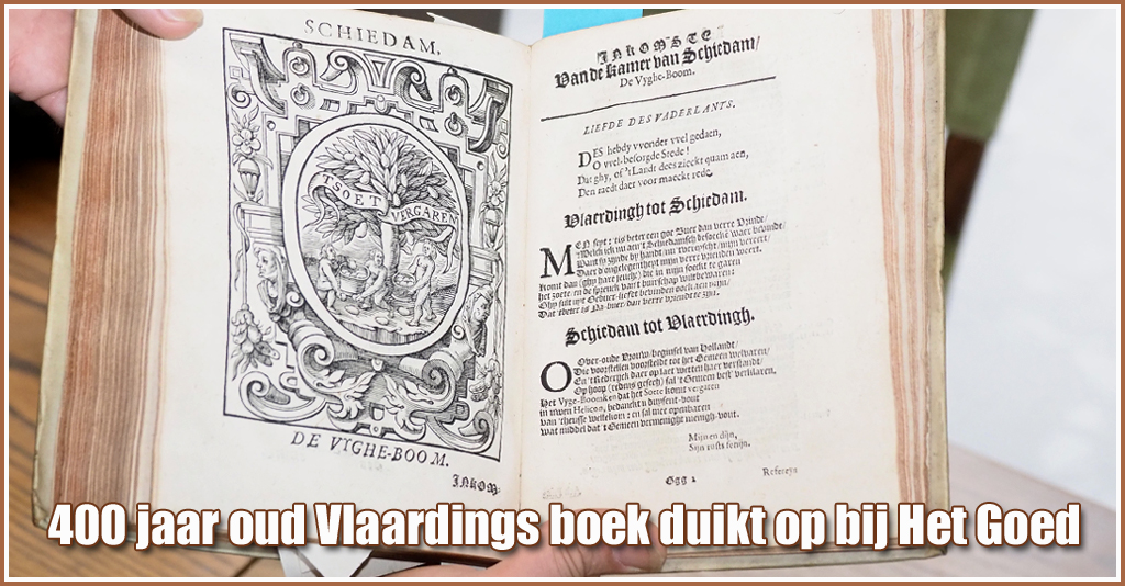 Het was enkele weken geleden dat het boek ontdekt werd. Bij het sorteren van binnengekomen/aangebrachte goederen, deden medewerkers van Kringloopwinkel Het Goed de bijzondere ontdekking. Een schijnbaar onbeduidend anoniem “oud” boek, bleek een exemplaar van “Vlaerdings Redenryck-Bergh” uit 1617 te zijn.